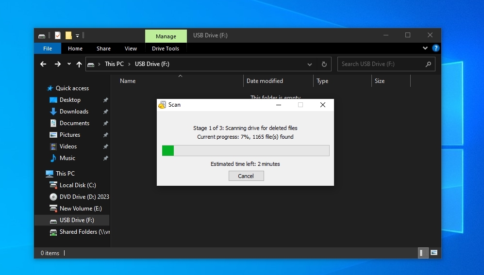 - Scanning our PC’s multi-terabyte storage devices would take a long time. So, we tried selecting In a specific location and choosing our shredded USB flash drive and SD card.