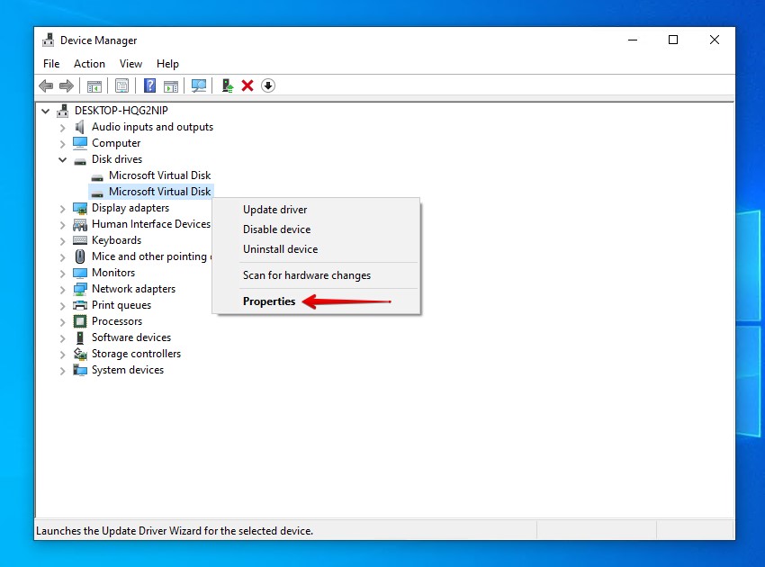 - Expand the Disk drives dropdown. Right-click your SD card, then select Properties. Bear in mind that your SD card may be named something else. Look for the brand of your SD card, for instance, SanDisk or Lexar.