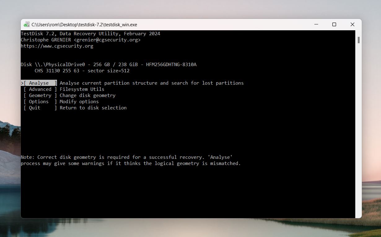That said, it’s not the most user-friendly tool—it runs entirely through a command-line interface. You’ll need to open it in Command Prompt and navigate its text-based menus. It requires extra care. Follow the steps closely—you wouldn’t want to choose the wrong option here, trust us.