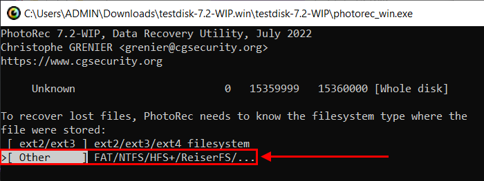 To use PhotoRec to retrieve your lost data, follow the steps below: